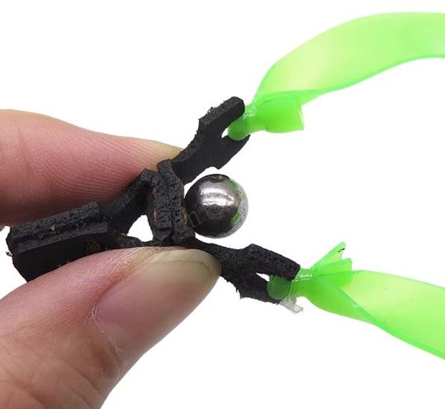 1 ensemble constitué de 2 bandes élastiques montées pour lance pierres avec 1 pouch de dimension adéquate à chaque billes